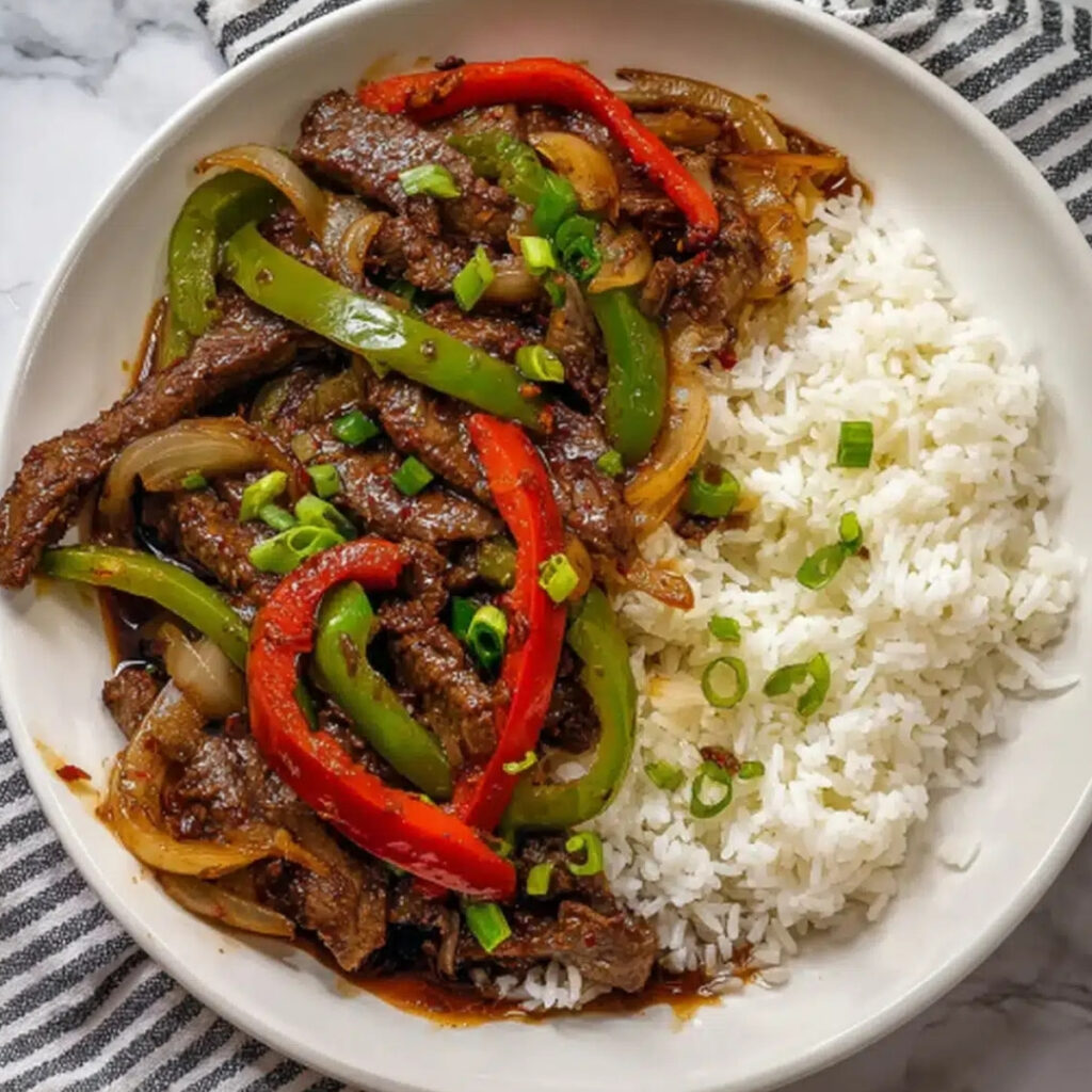 Sizzling Chinese Pepper Steak with Onions is bold, fast, and deeply satisfying. It captures that irresistible stir-fry magic the heat, the aroma, the glossy sauce coating tender beef and vibrant vegetables.