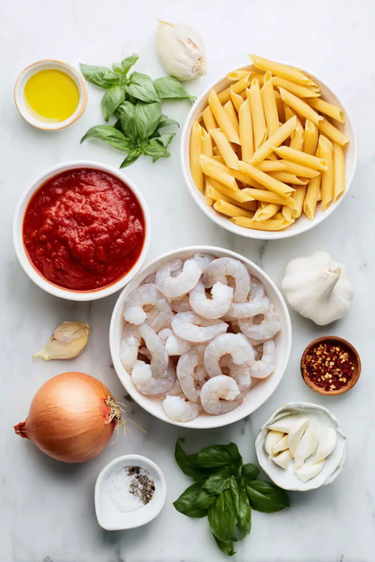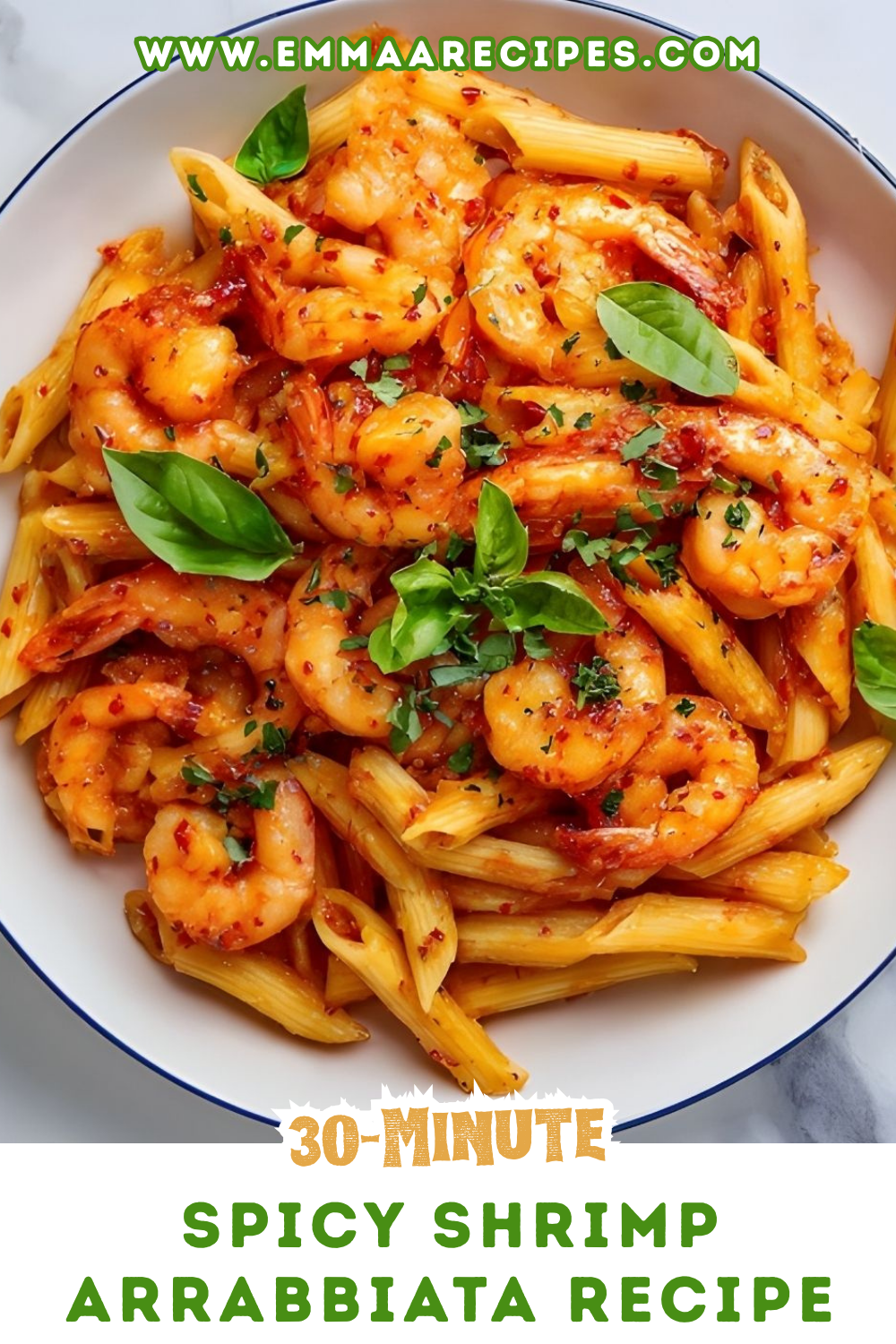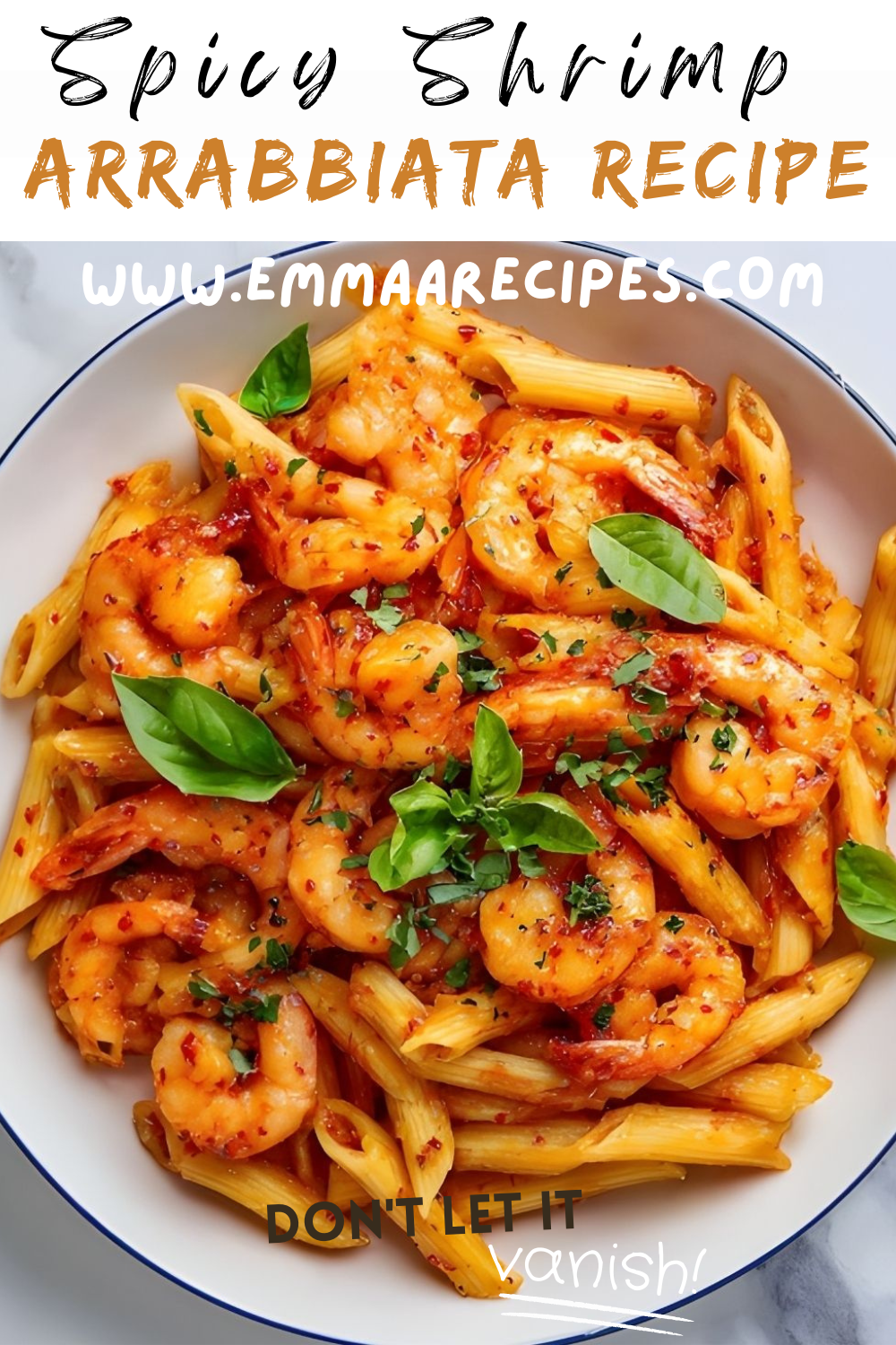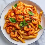 A bold and comforting Italian-inspired pasta made with tender shrimp, al dente penne, and a fiery garlic tomato arrabbiata sauce finished with fresh basil.