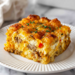 If there's a breakfast that brings everyone to the table with sleepy smiles and empty plates, it's this Tater Tot Breakfast Casserole with Sausage. It's the kind of dish that tastes like a warm hug savory, cheesy, comforting and fills the kitchen with the smell of something worth waking up for.