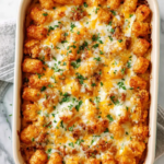 - Layer with intention: Mixing some cheese and tots into the base helps bind everything, while the top tots crisp up for texture.