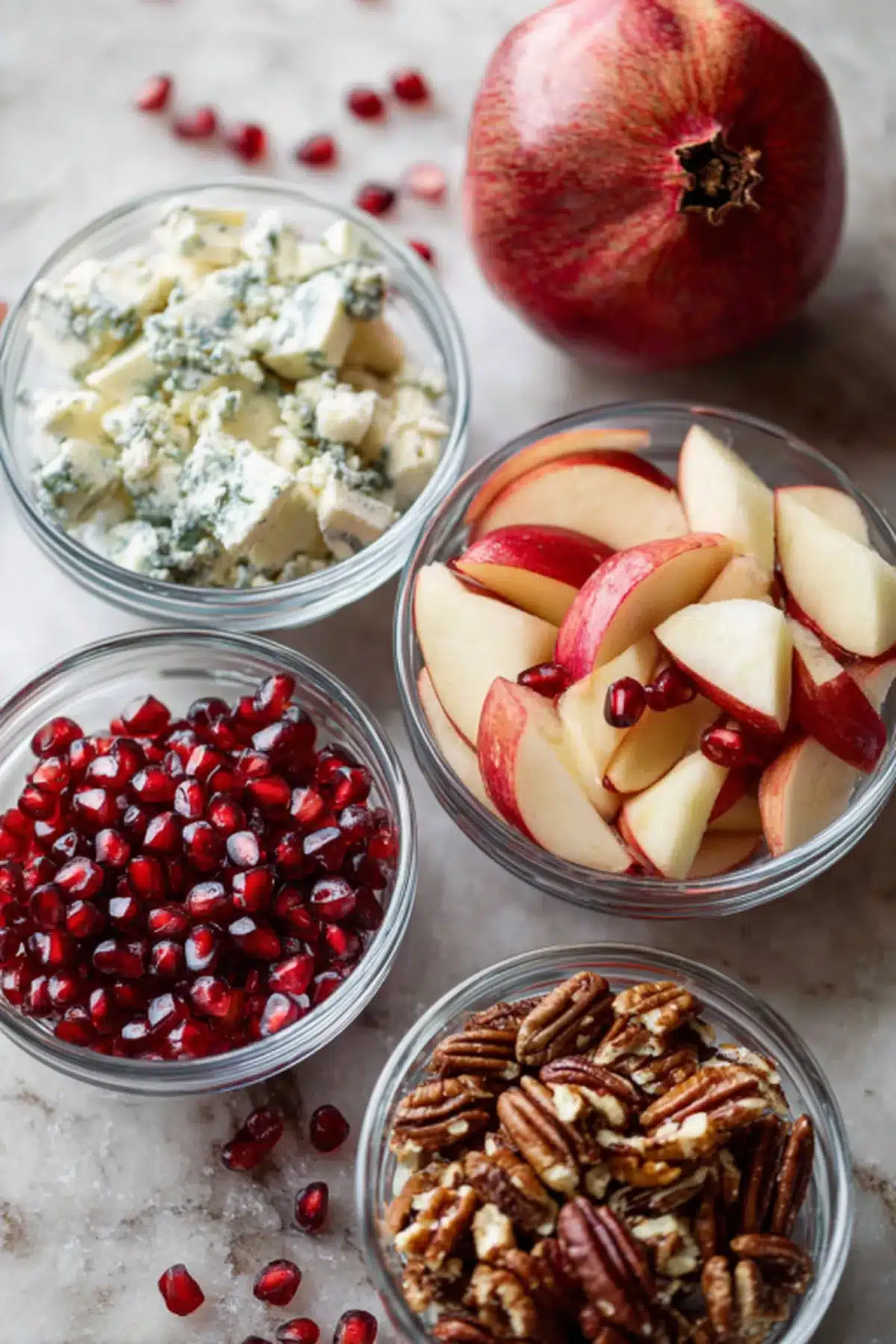 - Flavour: Juicy apples, tart pomegranate, creamy blue cheese, sweetโnutty pecans.