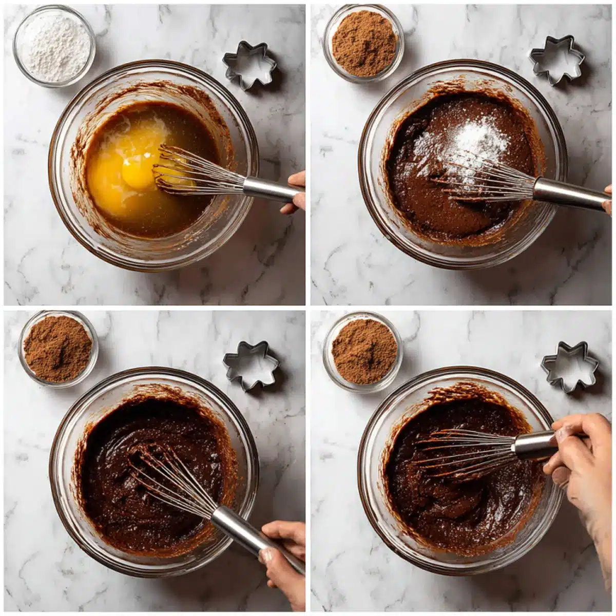 4. Add cocoa powder, flour, salt, espresso powder, and spices. Stir until just combined.